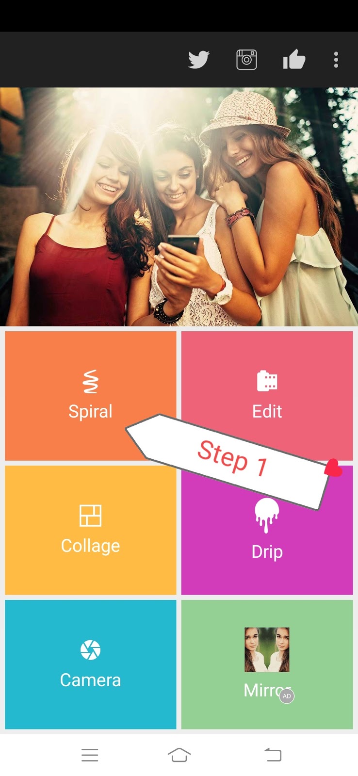 जैसे कि आपके पास पहले से फोटो था और आपने गैलरी से वह फोटो सिलेक्ट कर लिया जैसे कि आपने फोटो सिलेक्ट किया फिर आपके सामने यहां पर बहुत सारे ऑप्शन सा जाएंगे टोटल यहां पर आपको 5 ऑप्शंस देखने के लिए मिल जाते हैं जिसमें आप देखोगे जो पहला ऑप्शन है उसमें लिखा हुआ है एस्पेरल तो अब अपनी फोटो पर spiral effect तो आपको यहां पर एस्पेरल वाला जो ऑप्शन है इसके ऊपर क्लिक कर देना है