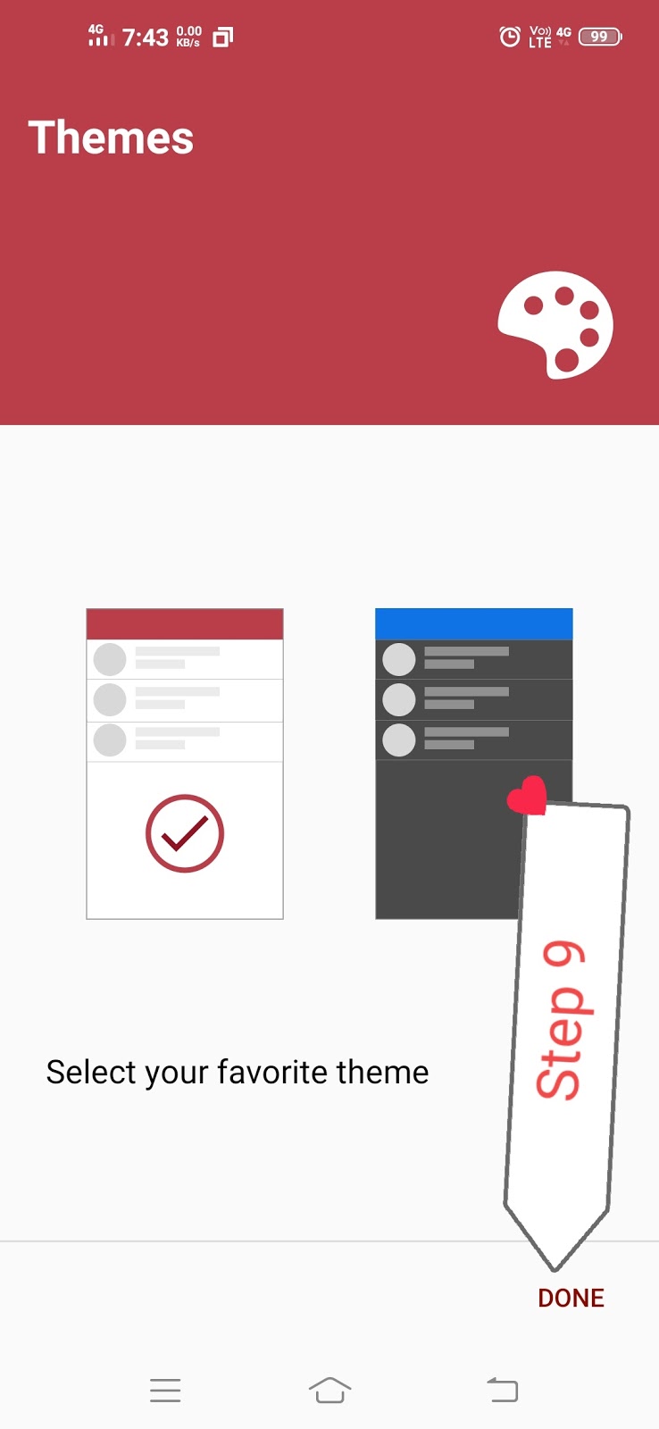 उसके बाद आपके सामने कुछ इस तरीके से आ जाएगा जिसमें कि आप थीम सिलेक्ट कर सकते हो तो जब भी नोटिफिकेशन बार में हमें दिखेगा की कॉल रिकॉर्डिंग हो रही है या नहीं हो रही है हमारे फोन में तो अभी आप इसे डन कर दो