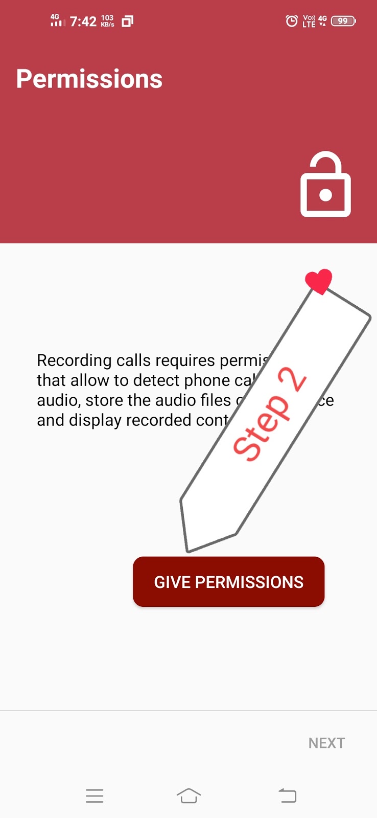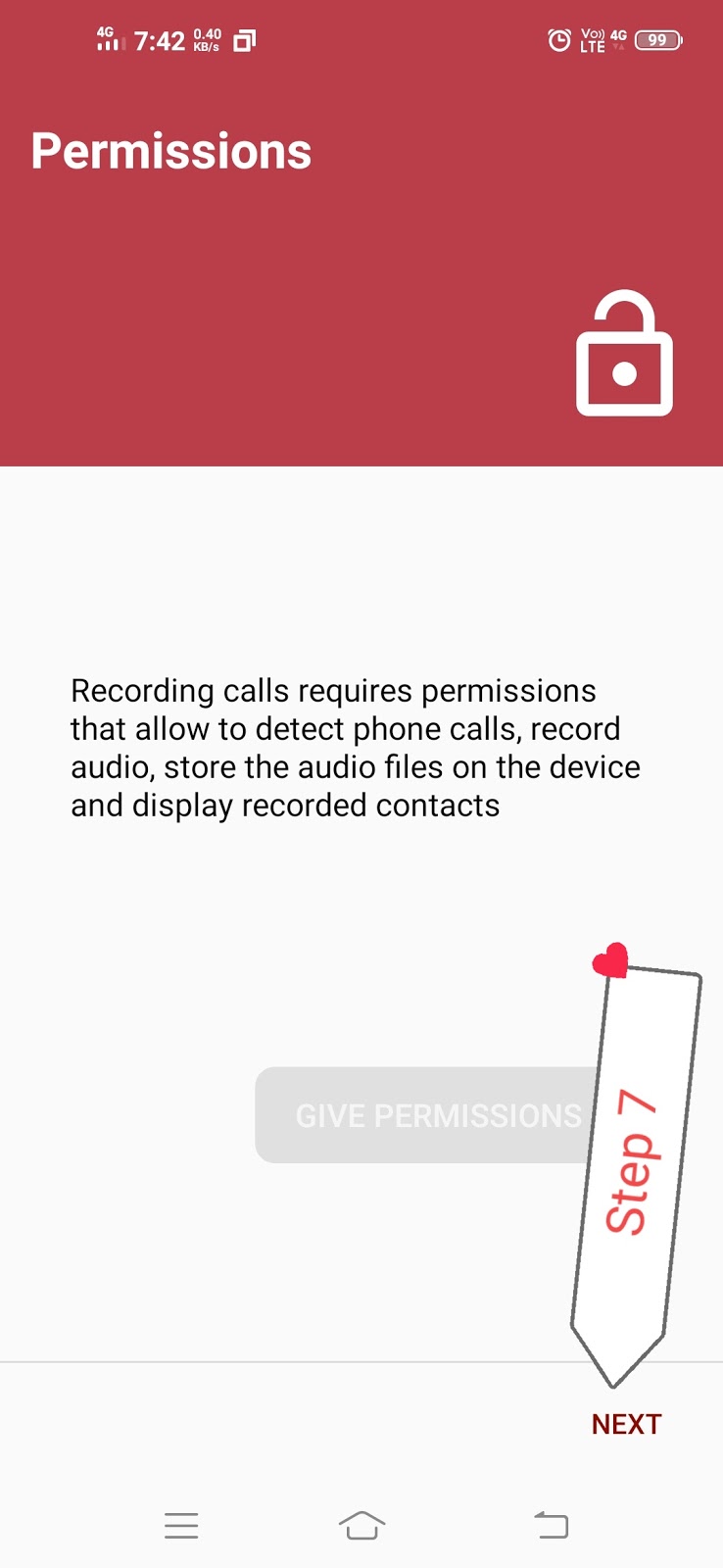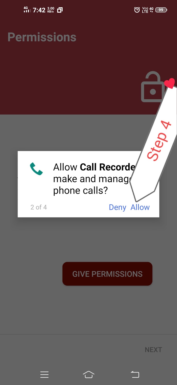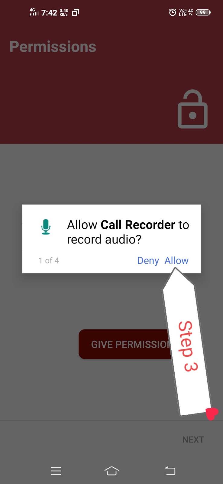 तो हमें इसे कॉल रिकॉर्डिंग की परमिशन देना होगा ताकि हमारे फोन में यह कॉल को रिकॉर्ड कर सके अगर आप इसे परमिशन नहीं दोगे तो यह ऐप भी ओपन नहीं होगा तो उसे परमिशन जरूर देना ताकि यह एप्लीकेशन प्रॉपर वर्क करें और हमारी कॉल रिकॉर्डिंग रिकॉर्ड करें