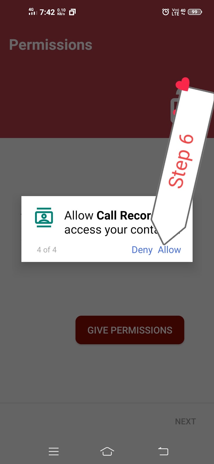 यहां पर आप से एक और नई परमिशन मांगेगा जिसमें कि आपके कोंटेक्ट की होगी यह परमिशन भी हमें देना होगा ताकि यह एप्लीकेशन हमें यह बता सकें कि यह कॉल रिकॉर्डिंग किस नंबर की है किस कांटेक्ट की है हमारे जो फोन में कांटेक्ट सेव है तो आपको यह भी परमिशन देना होगा