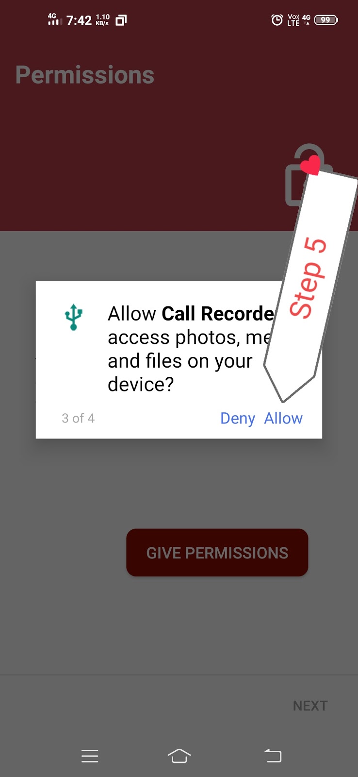 आप से एक और नई परमिशन मांगेगा जिसमें कि आपकी डिवाइस की स्टोरेज यानी की फाइल का तो आपको यह भी परमिशन देना होगा ताकि जो भी कॉल रिकॉर्डिंग हो उसे यह हमारे फोन में सेव कर सके तो इसलिए हमें यह भी परमिशन देना होगा