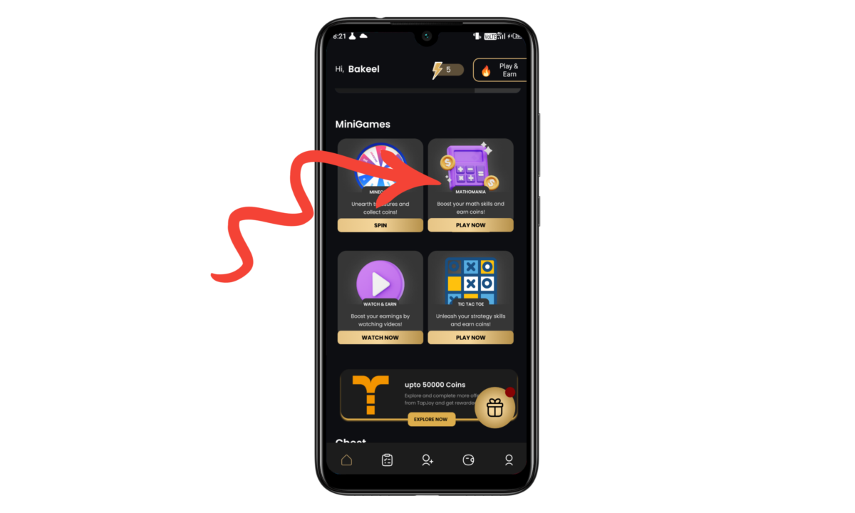 Step 7 :  दूसरा ऑप्शन आपको मैथ का मिलेगा इसमें आपके सवालों के जवाब देना है और अपनी मठ को स्ट्रांग करना है यहां आपको जोड़ के सवाल घटाओ के सवाल गुना के सवाल करने होंगे यदि आप सभी का सही से जवाब देते हैं आपको पैसे मिलेंगे पैसे पहले आपके कॉन में प्राप्त होंगे जिसको आप बाद में अकाउंट में पैसों में कन्वर्ट करके redeem कर सकते हैं,
